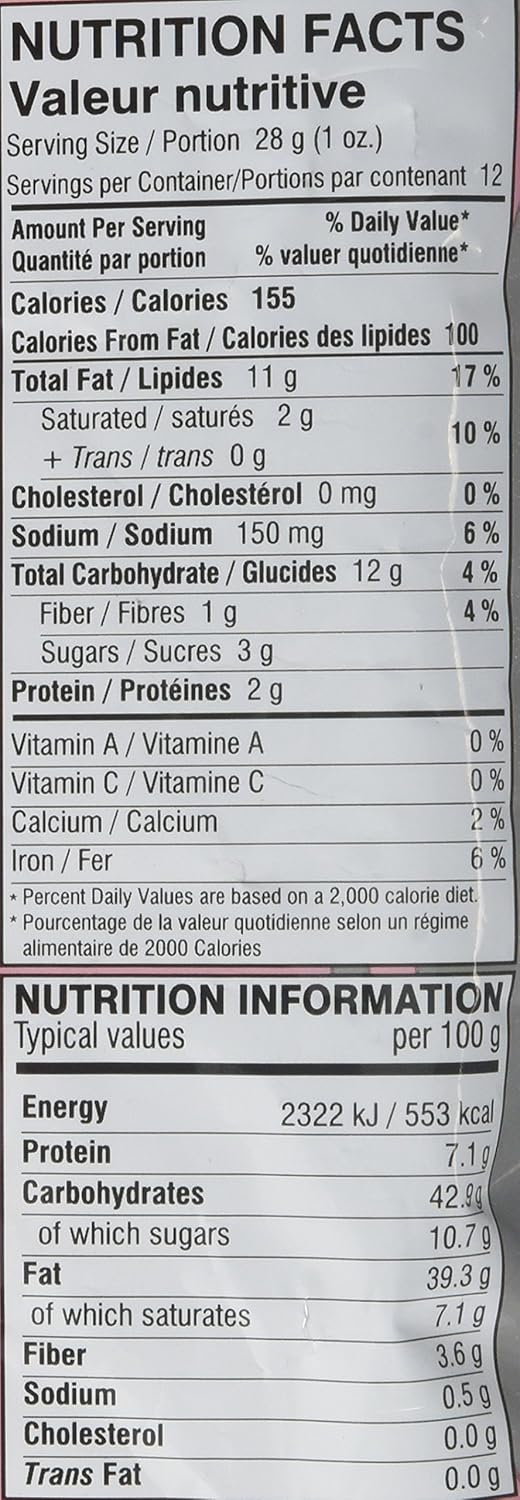Ingredients: Rice Flakes, CAnola Oil, Moong Beans, Split Chick Peas, Peanuts, Raisins, Salt, Sugar, Red Pepper, Tumeric, Sesame, Seeds, Spices, Curry Leaves, Citric Acid, Paprika.